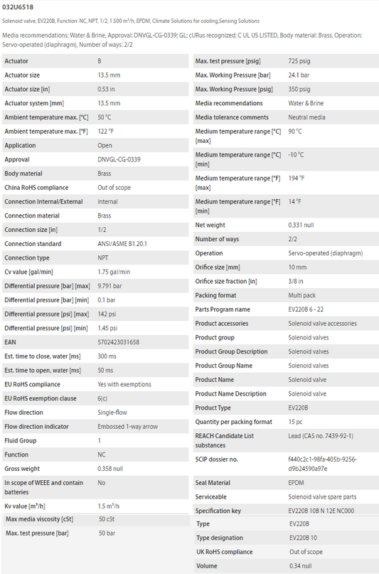 Danfoss 032U6518 Solenoid Valve EV220B