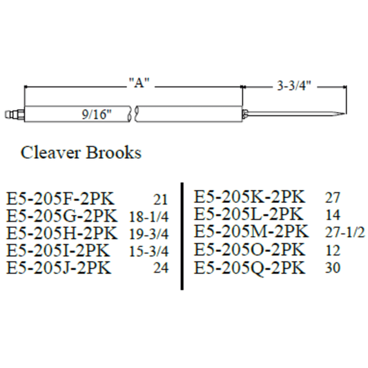 E5-205U-2PK - Westwood - 205U, Cleaver Brooks Electrode 2pk
