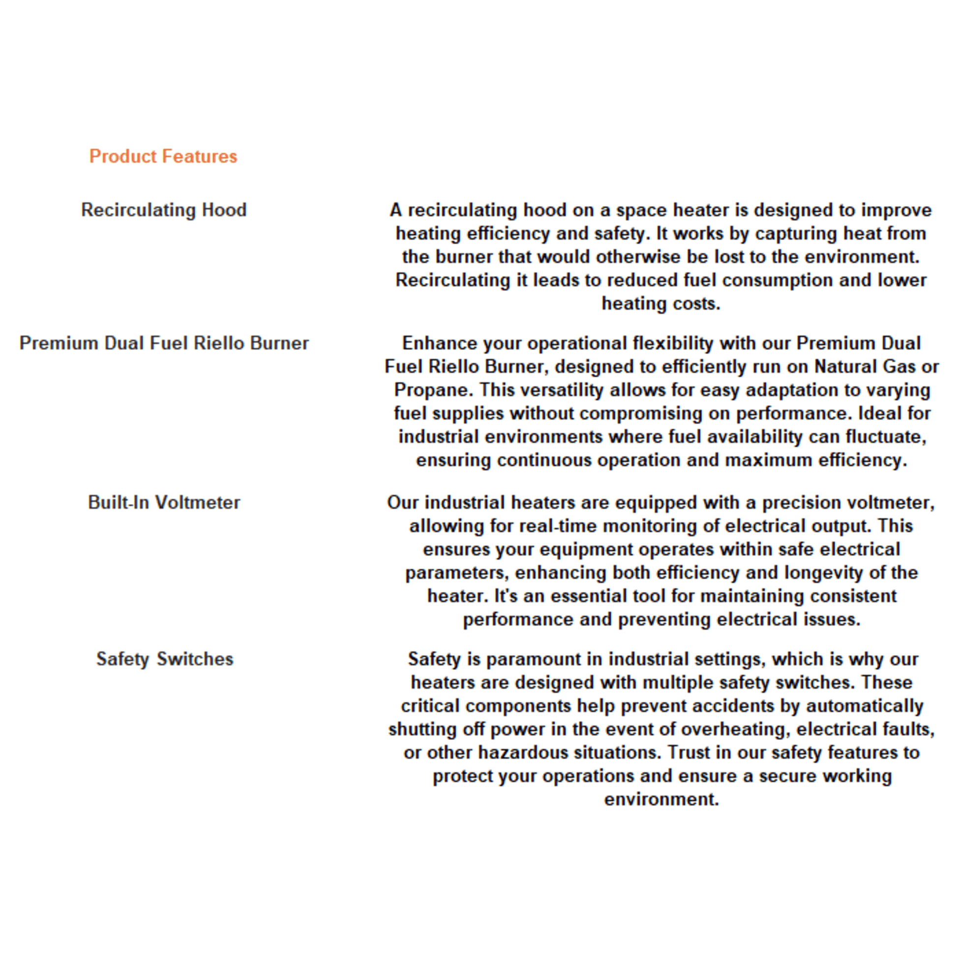 The HD-400R is a versatile, robust and powerful portable heater that operates using Propane or Natural Gas. A fuel selector valve combined with the Riello burner allows for an easy conversion between fuel types. The ‘R” series is equipped with a backward Incline fan system with recirculating hood to improved noise levels, & increased air flow. The built in voltmeter helps verify proper voltage/power to the heater. The remote thermostat helps provide a more controlled temperature for a more comfortable working environment.