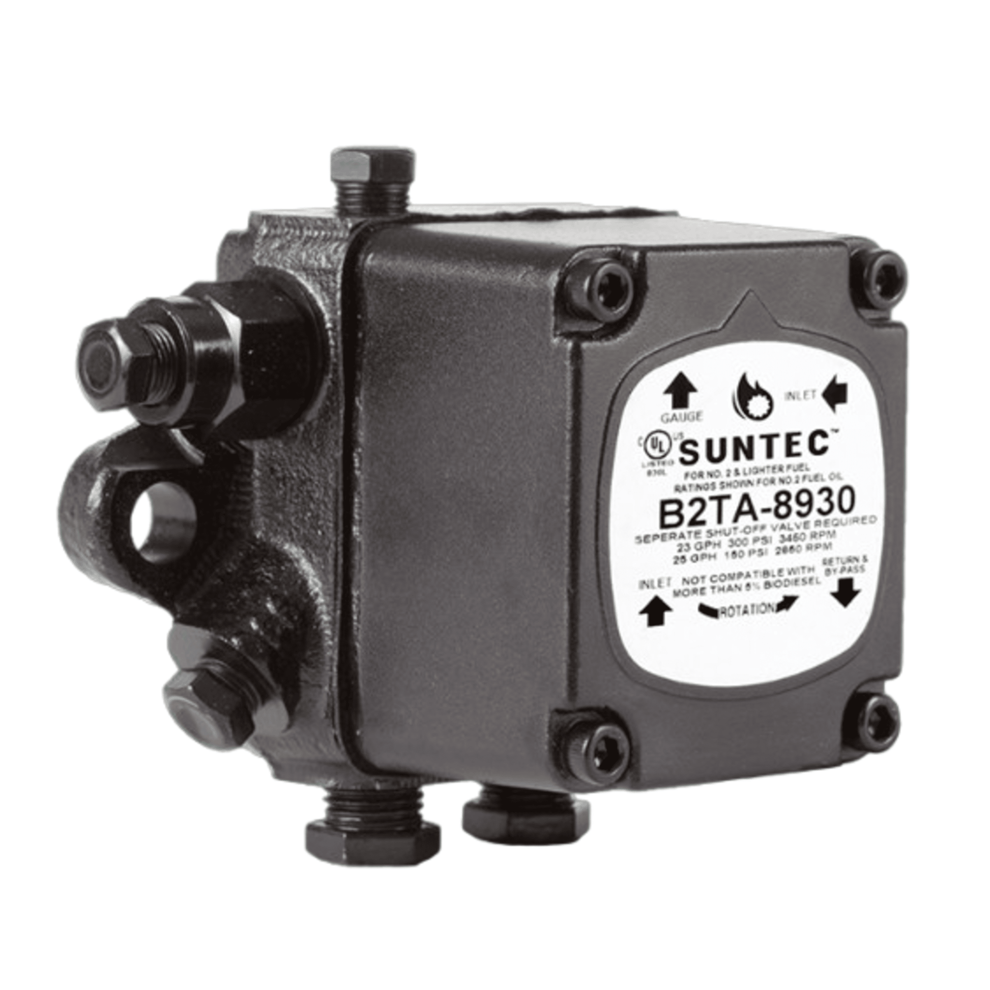 The SUNTEC B2TA-8851B B20 Fuel Unit is a high-pressure, two-stage fuel pump designed for use with fuel oil #2 and lighter, including biodiesel blends up to B20 (20% biodiesel). Here are some key technical details: