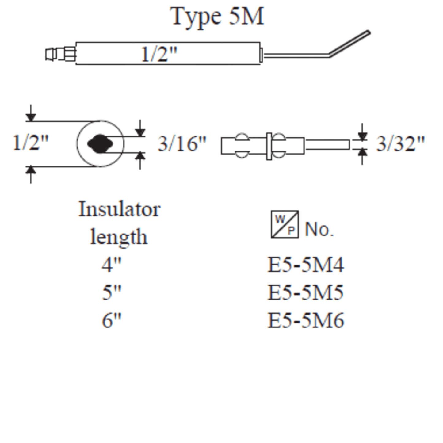 Westwood 5M6, Type 5M Electrode, 6” 2pk