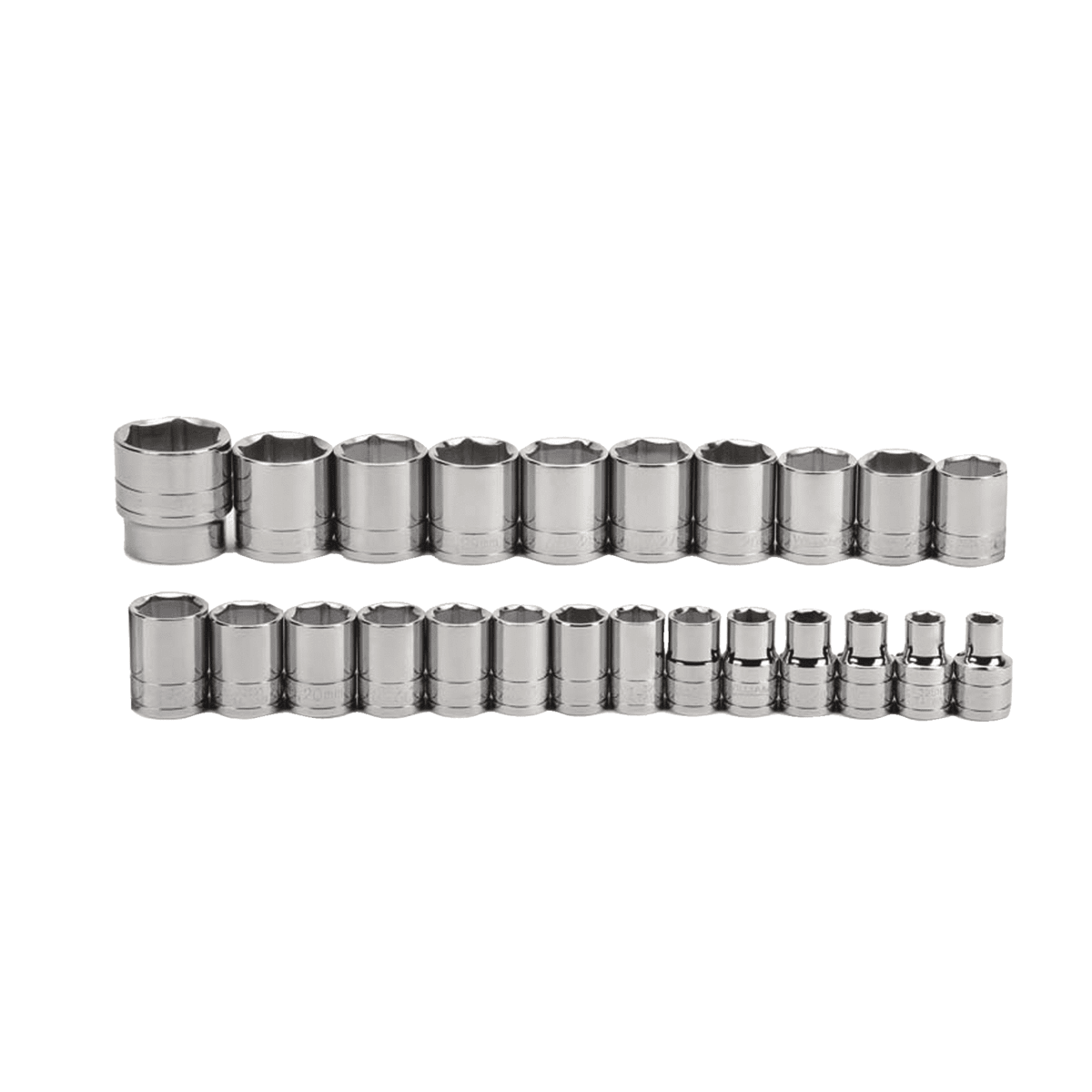 JHW32941 - Williams - 24 pc 1/2" Drive 6-Point Metric Shallow Socket Set on Rail and Clips