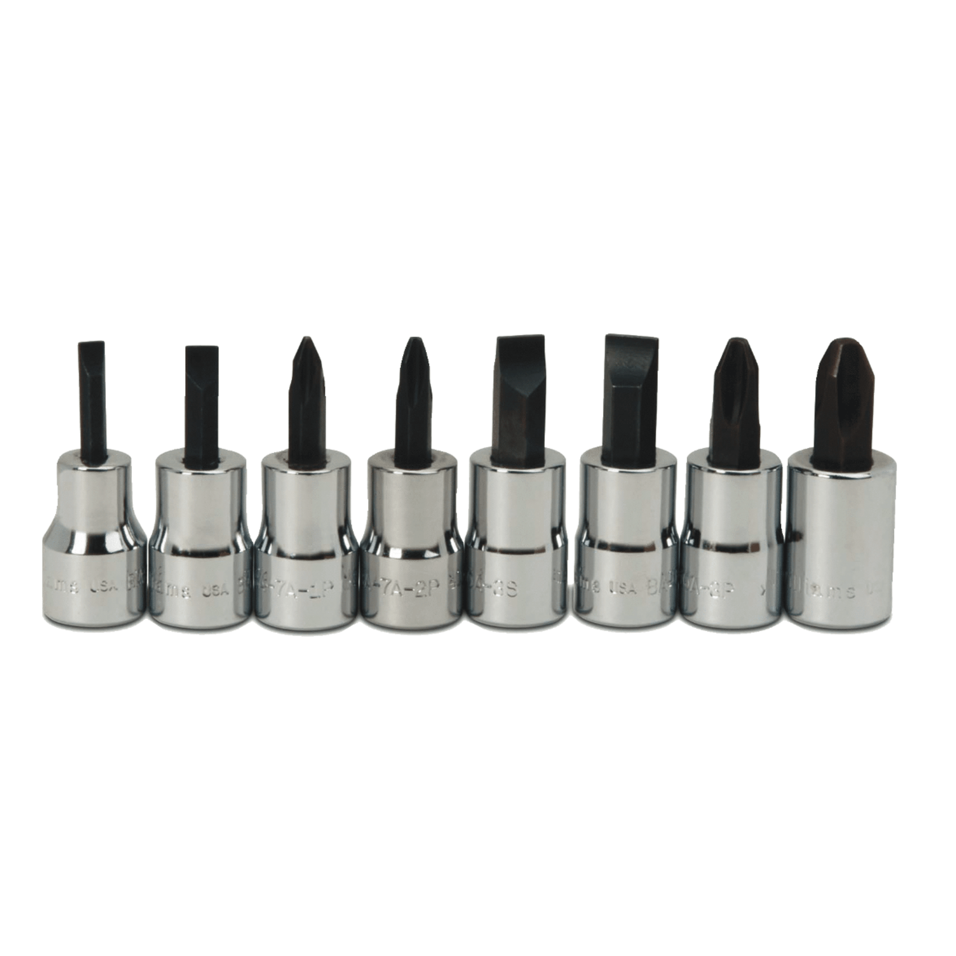 JHWWSBSP-8RC - Williams - 8 pc 3/8" Drive -Point Bit Screwdriver Bit Socket Set on Rail and Clips